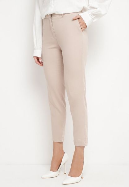 Beżowe Eleganckie Spodnie Cygaretki z Wysoką Talią Sinvara