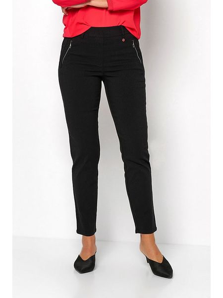 – pas / ściągacz: elastyczny- szlufki na pasek: tak- długość nogawki: 7/8- kieszenie: zasuwane, tylne- krój: wąski- look: jednokolorowy