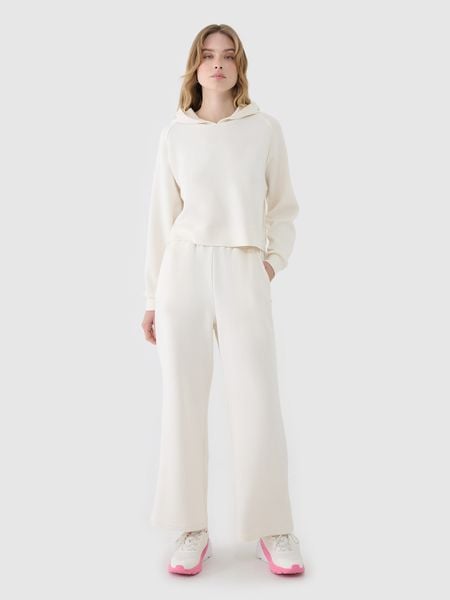 4F Spodnie dresowe z modalem z szerokimi nogawkami damskie – białe L