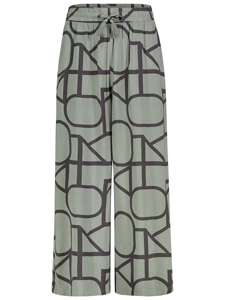 Zielono-Beżowe Spodnie Szerokie w Abstrakcyjny Wzór z Wiskozy Averina