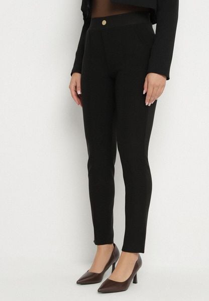 Czarne Spodnie o Dopasowanym Kroju z Gumką w Talii i Kieszeniami Rizenna