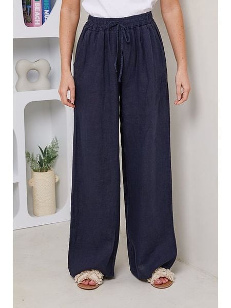 – czysty len- pas: ściągacz tunelowy- kieszenie: wpuszczane- krój: luźny- look: jednokolorowy