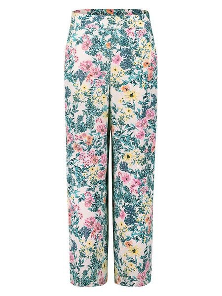 – czysta wiskoza- pas / ściągacz: elastyczny- zakończenia nogawek: dzwony- krój: prosty- wzór: kwiatowy