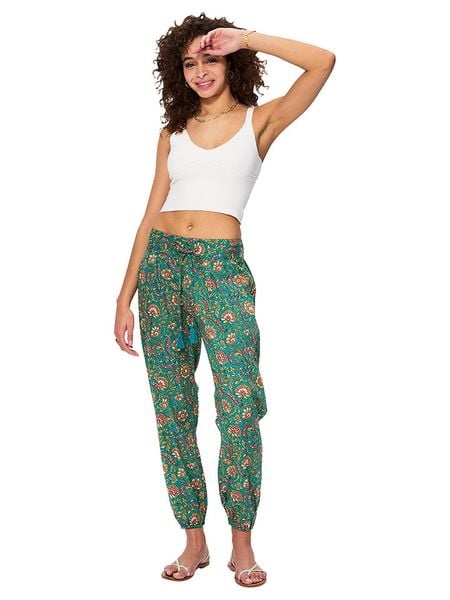– czysta bawełna- wysokość pasa: high waist- pas / ściągacz: elastyczny- kieszenie: wpuszczane- zakończenia nogawek: elastyczne- długość nogawek: 7/8- fason: bombka- wzór: kwiatowyWskazówka: Na metkach odzieży tej marki znajdują się rozmiary francuskie. Rozmiarówka została przez nas przeliczona. Podane do wyboru warianty rozmiarów odpowiadają standardowym europejskim rozmiarom konfekcji. Prosimy zapoznać się z zamieszczonym objaśnieniem rozmiarów.