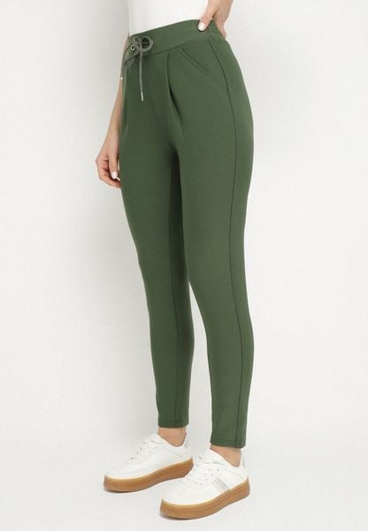 Zielone Spodnie o Prostym Kroju z Wysokim Stanem i Gumką w Talii Fadira