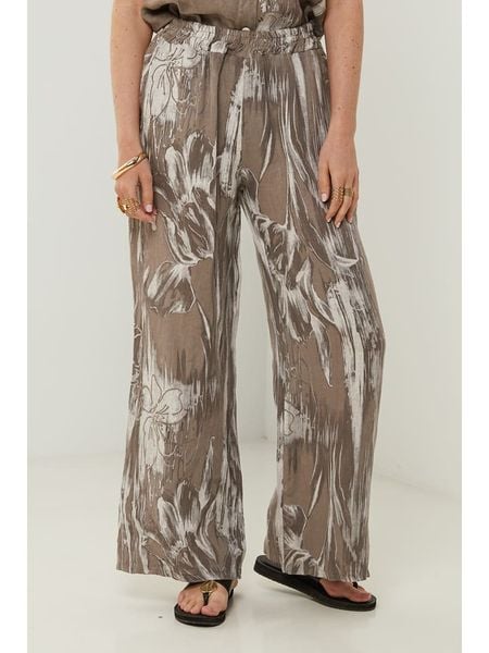 – czysty len- wysokość pasa: high waist- pas / ściągacz: elastyczny- kieszenie: wpuszczane- krój: luźny- wzór: kwiatowy