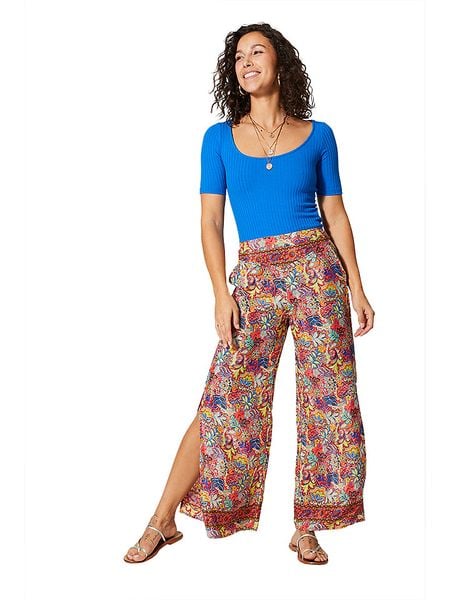 – czysta wiskoza- wysokość pasa: high waist- pas / ściągacz: elastyczny- kieszenie: wpuszczane- zakończenia nogawek: z rozcięciem- krój: luźny- wzór: kwiatowyUwaga: Na metkach odzieży tej marki znajdują się rozmiary francuskie. Rozmiarówka została przez nas przeliczona. Podane do wyboru warianty rozmiarów odpowiadają standardowym europejskim rozmiarom konfekcji. Prosimy zapoznać się z zamieszczonym objaśnieniem rozmiarów.
