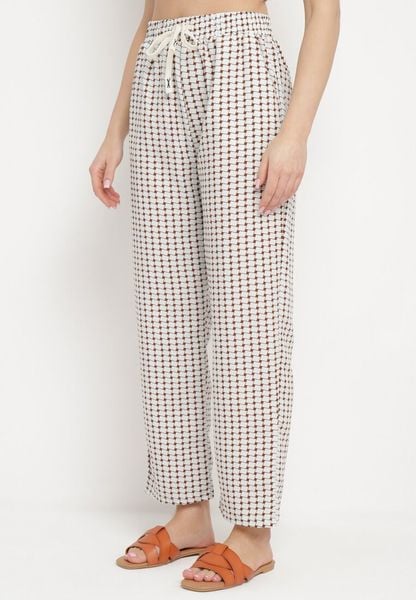 Beżowo-Brązowe Spodnie w Geometryczny Print z Wysokim Stanem Lolla