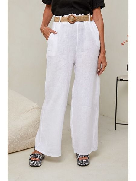 Le Monde du Lin Lniane spodnie w kolorze białym rozmiar: 38/40