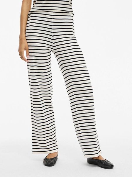 – z dodatkiem poliestru pochodzącego z recyklingu- wysokość pasa: high waist- pas / ściągacz: elastyczny- krój: luźny- wzór: paski