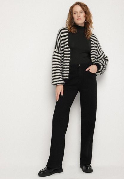 Czarne Jeansy o Szerokim Kroju z Wysokim Stanem Rilunisse