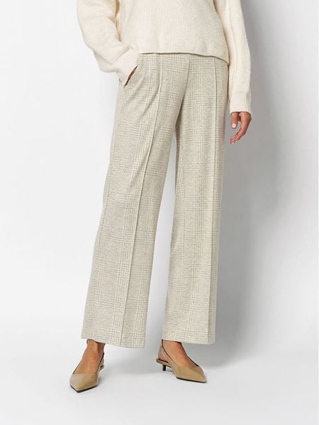 – wysokość pasa: high waist- pas / ściągacz: elastyczny- kieszenie: wpuszczane- detale: kant- krój: luźny- wzór: kratka
