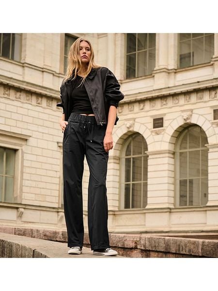 – wysokość pasa: high waist- pas: ściągacz tunelowy- kieszenie: wpuszczane- krój: prosty- look: jednokolorowy