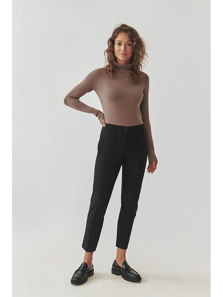 – wysokość pasa: regular waist- fason: slim fit- krój nogawek: wąski- zapięcie: guzik i suwak- kieszenie: wpuszczane- długość nogawki: 7/8- detale: kant- look: jednokolorowy