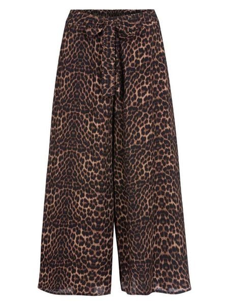 – czysta wiskoza- wysokość pasa: high waist- pas: ściągacz tunelowy- krój: luźny- wzór: panterka