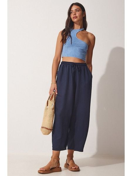 odzież damska happiness istanbul niebieskie spodnie materiałowe damskie spodnie materiałowe damskie happiness istanbul spodnie materiałowe damskie ze sklepu limango.pl odzież damska limango.pl