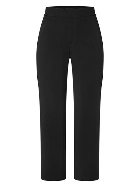 – wysokość pasa: high waist- fason: regular fit- krój nogawek: prosty- pas / ściągacz: elastyczny- kieszenie: wpuszczane- look: jednokolorowy