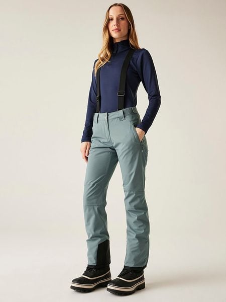 – wodoszczelność: do 20.000 mm słupa wody- oddychalność: 30.000 g/ m²/ 24hv- zgrzewane szwy- szelki: regulowane, odpinane- zapięcie: guzik i suwak- pas: boczna regulacja przy pomocy rzepów- zasuwane kieszenie boczne: 2- gumowany śniegołap: wszyty- szerokość zakończenia nogawek: regulowana zamkiem- look: jednokolorowy