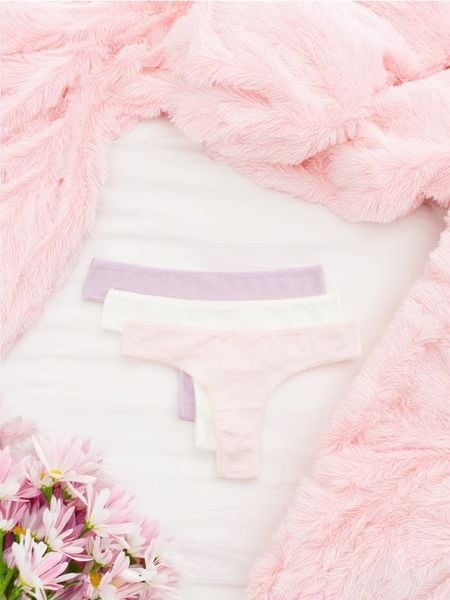 Zestaw 3 par majtek typu stringi wykonanych z bawełny z dodatkiem elastycznych włókien.