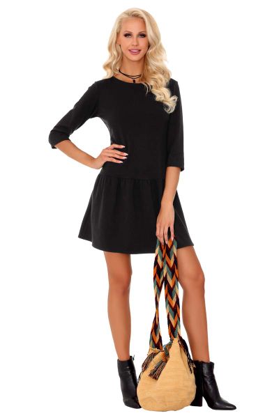 Czarna Casualowa Sukienka Dzianinowa z Obniżonym Stanem