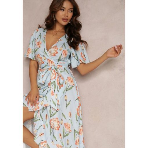 Sukienka Zinano midi, z rozkloszowanymi rękawami sięgającymi do łokci. Z wycięciami na ramionach. Fason z kopertowym, głębokim dekoltem. Na dole falbana. Z tyłu w pasie gumka i wiązanie na szeroki, materiałowy pasek. Z wycięciem z przodu. Lekko rozkloszowana. Pokryta kwiatowym wzorem. Sukienka nie ma podszewki. Noś ją z lakierowanymi butami i pikowaną torebką. Gumka w […]