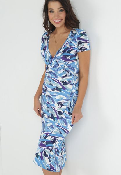 Niebieska Sukienka Kopertowa z Falbanką Malva