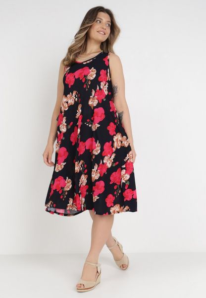 Sukienka Akisiphise o długości midi, z zaokrągloną linią dekoltu. Góra bez rękawów, dół rozkloszowany. Wykonana z dzianiny zdobionej motywem dużych kwiatów. Uwielbiasz midisukienki z efektownym wzorem? Model Akisiphise z pewnością przypadnie Ci do gustu. Dopasuje się zarówno do tenisówek, jak i wysokich czółenek na słupku albo espadryli na koturnie.