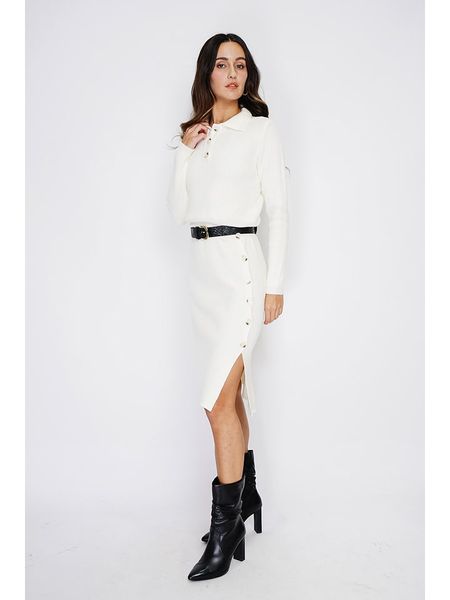 ASSUILI Kaszmirowa sukienka dzianinowa w kolorze białym rozmiar: 36