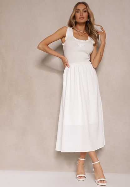 Biała Rozkloszowana Sukienka z Wiskozy Ozdobiona Naszywką Ronlina