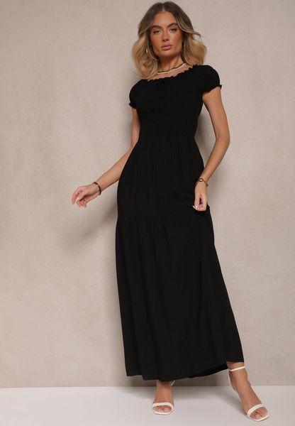 Czarna Sukienka z Wiskozy w Stylu Hiszpanki Ozdobiona Marszczeniem Jenalena