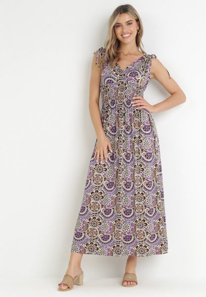 Fioletowo-Niebieska Wiskozowa Sukienka Maxi z Kopertowym Dekoltem i Gumką w Talii Erian