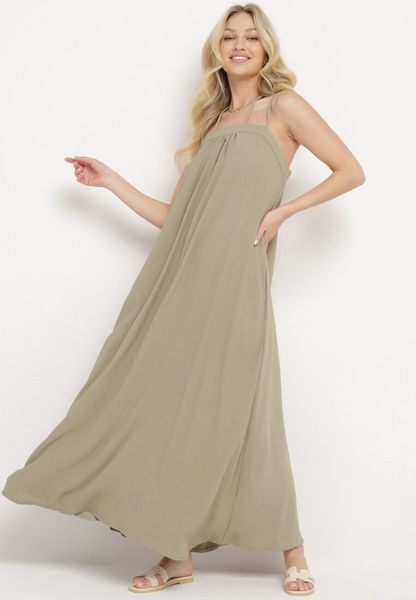 Zielona Bawełniana Sukienka na Ramiączkach Wiązana na Szyi i Plecach ze Ściągaczem Vikllie