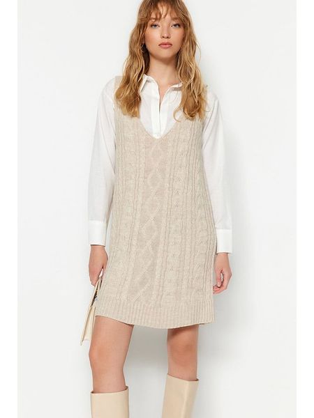 trendyol Sukienka dzianinowa w kolorze beżowym rozmiar: M