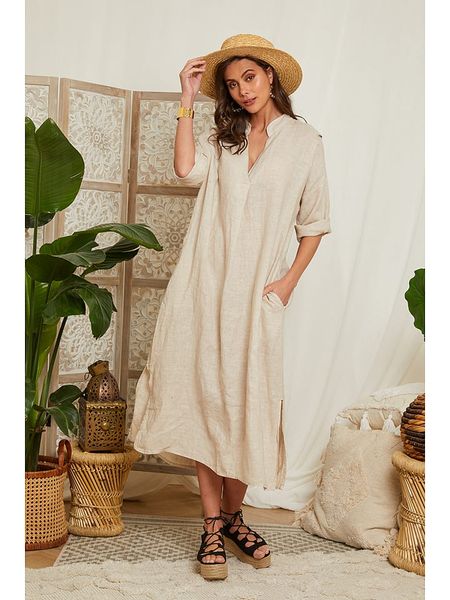 Lin Passion Lniana sukienka w kolorze beżowym rozmiar: 34/36