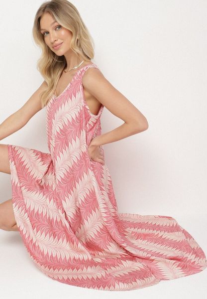 Różowa Sukienka o Rozkloszowanym Kroju z Szerokimi Ramiączkami Filenaria