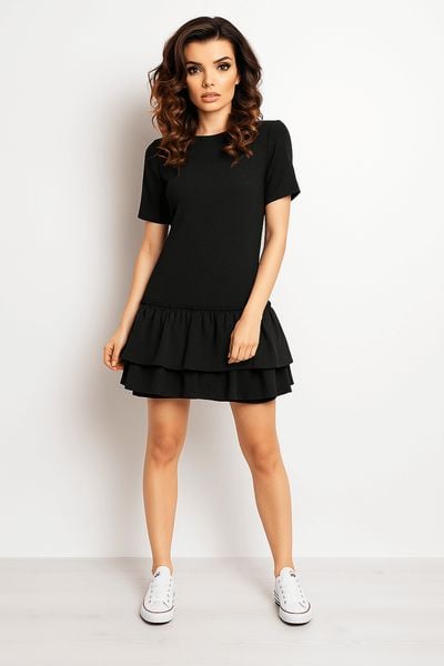 Wygodna sukienka w casualowym stylu, Wykonana z wysokogatunkowej bawełny. Góra dopasowana, na dole zaś ozdobiona dwoma rzędami falbanek, dodającymi jej dodatkowego uroku. Fason będzie się dobrze prezentował z trampami jak i z bardziej eleganckimi butami typu balerina. Sukienka idealna na co dzień. Dobierz do niej swoje ulubione dodatki i stwórz własną, wyjątkową stylizację. Bardzo dobra jakość, […]