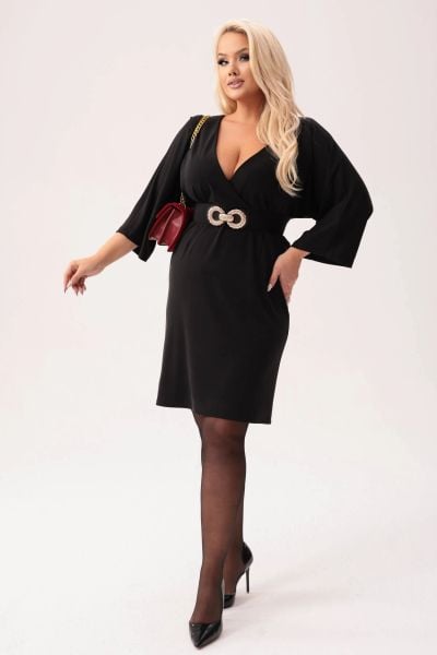 Czarna wiskozowa sukienka Ivette z kopertowym dekoltem PLUS SIZE XXL JESIEŃ