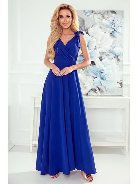 – ramiączka: szerokie – dekolt: V- zapięcie: suwak na plecach- detale: ozdobne wiązanie- krój: rozkloszowany- look: jednokolorowyUwaga: Przy wyborze właściwego wariantu zaleca się korzystanie z tabeli rozmiarów.