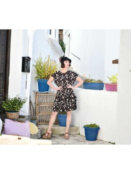 – dekolt: okrągły- krój: rozkloszowany- wzór: na całości