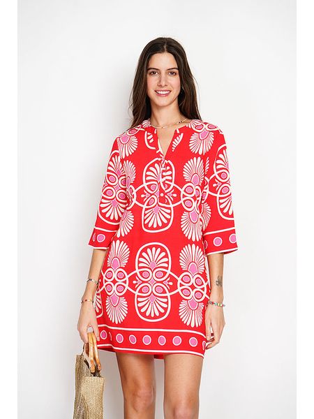 – z dodatkiem lnu- dekolt: z rozcięciem- długość rękawa: półdługi- krój: litera A- wzór: na całościUwaga: Na metkach odzieży tej marki znajdują się rozmiary francuskie. Rozmiarówka została przez nas przeliczona. Podane do wyboru warianty rozmiarów odpowiadają standardowym europejskim rozmiarom konfekcji. Prosimy zapoznać się z zamieszczonym objaśnieniem rozmiarów.