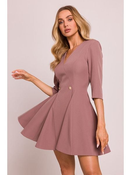 – dekolt: V- zapięcie: suwak na plecach- długość rękawa: 3/4- detale: ozdobne guziki- krój: rozkloszowany- look: jednokolorowy