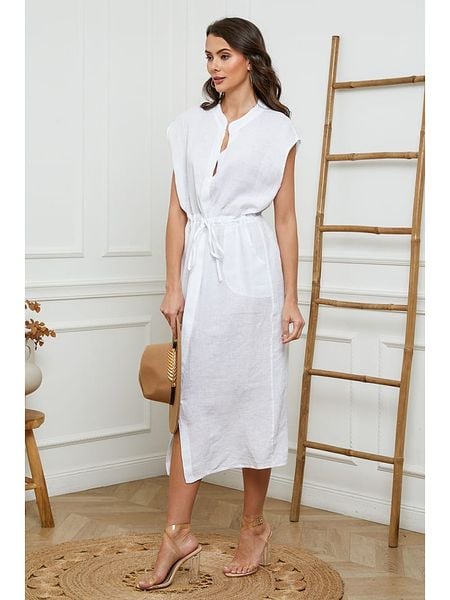 – czysty len- dekolt: z rozcięciem- talia: ściągacz tunelowy- kieszenie: wpuszczane- dolny brzeg: 7/8, z rozcięciem- krój: taliowany- look: jednokolorowy