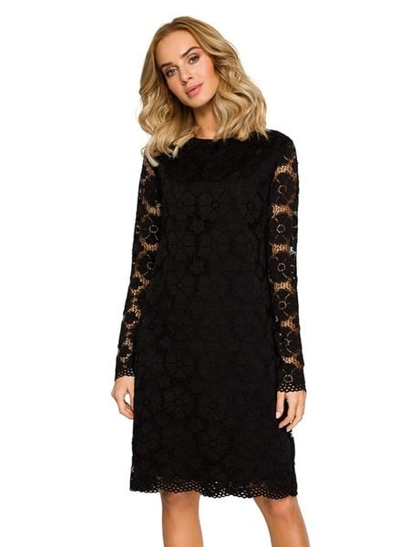 – dekolt: okrągły- zapięcie: guzik na plecach- detale: koronka- krój: prosty- look: jednokolorowy