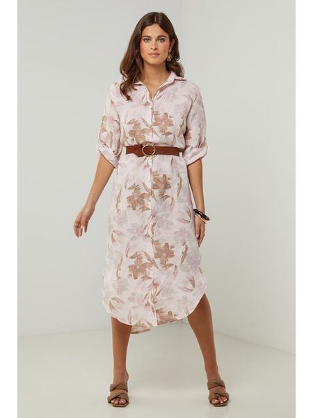 Lin Passion Lniana sukienka w kolorze kremowo-jasnoróżowym rozmiar: 40/42