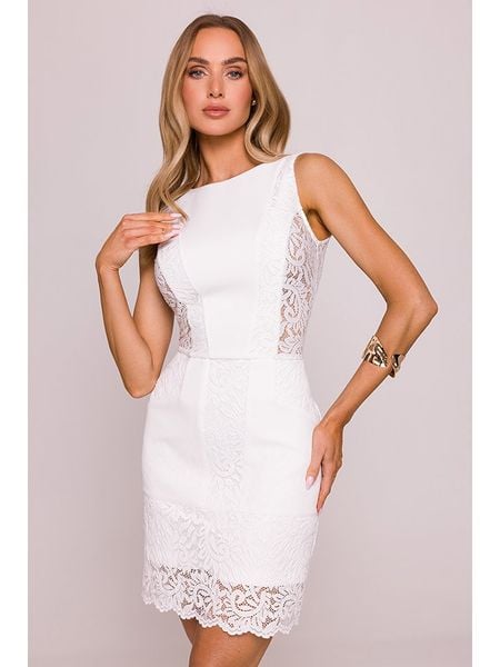 – dekolt: okrągły- ramiączka: szerokie- zapięcie: suwak na plecach- krój: taliowany- detale: szydełkowana koronka- look: jednokolorowy