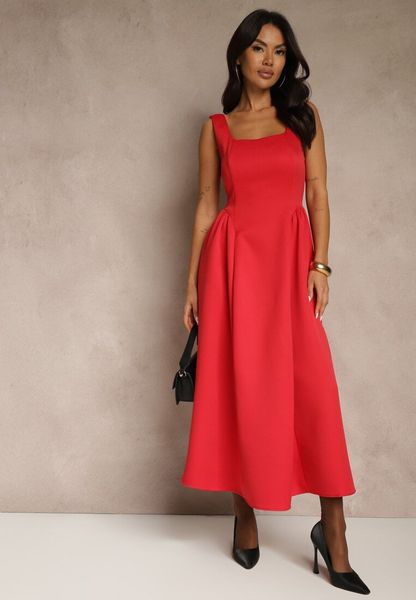 Czerwona Sukienka o Rozkloszowanym Kroju na Szerokich Ramiączkach Retelina