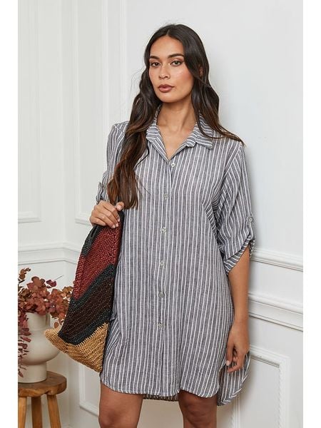 – z dodatkiem lnu- kołnierz: kent- zapięcie: listwa guzikowa- zakończenie rękawów: patka i guzik- krój: dłuższe plecy- krój: luźny- wzór: paski