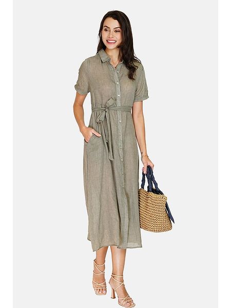 Le Jardin du Lin Lniana sukienka w kolorze khaki rozmiar: 38