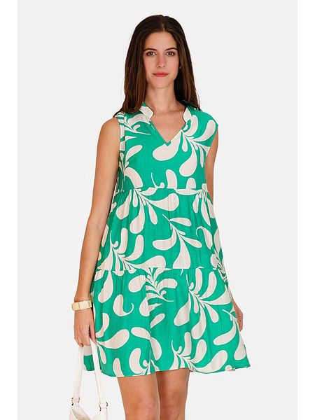 – z dodatkiem lnu- ramiączka: szerokie- dekolt: V- dolny brzeg: z falbankami – krój: litera A- wzór: na całościWskazówka: Na metkach odzieży tej marki znajdują się rozmiary francuskie. Rozmiarówka została przez nas przeliczona. Podane do wyboru warianty rozmiarów odpowiadają standardowym europejskim rozmiarom konfekcji. Prosimy zapoznać się z zamieszczonym objaśnieniem rozmiarów.