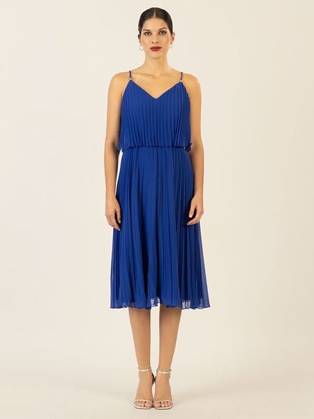 – ramiączka: wąskie- dekolt: V- zapięcie: suwak na plecach- talia: elastyczna- krój: litera A- look: jednokolorowy, plisy